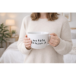 Akční nabídky na váš e-mailXXL bílý keramický hrnek 1 000 ml – Bez kafe to nejsem já