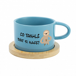 Keramický hrneček s bambusovým podtáckem – Co takhle dát si kafe?