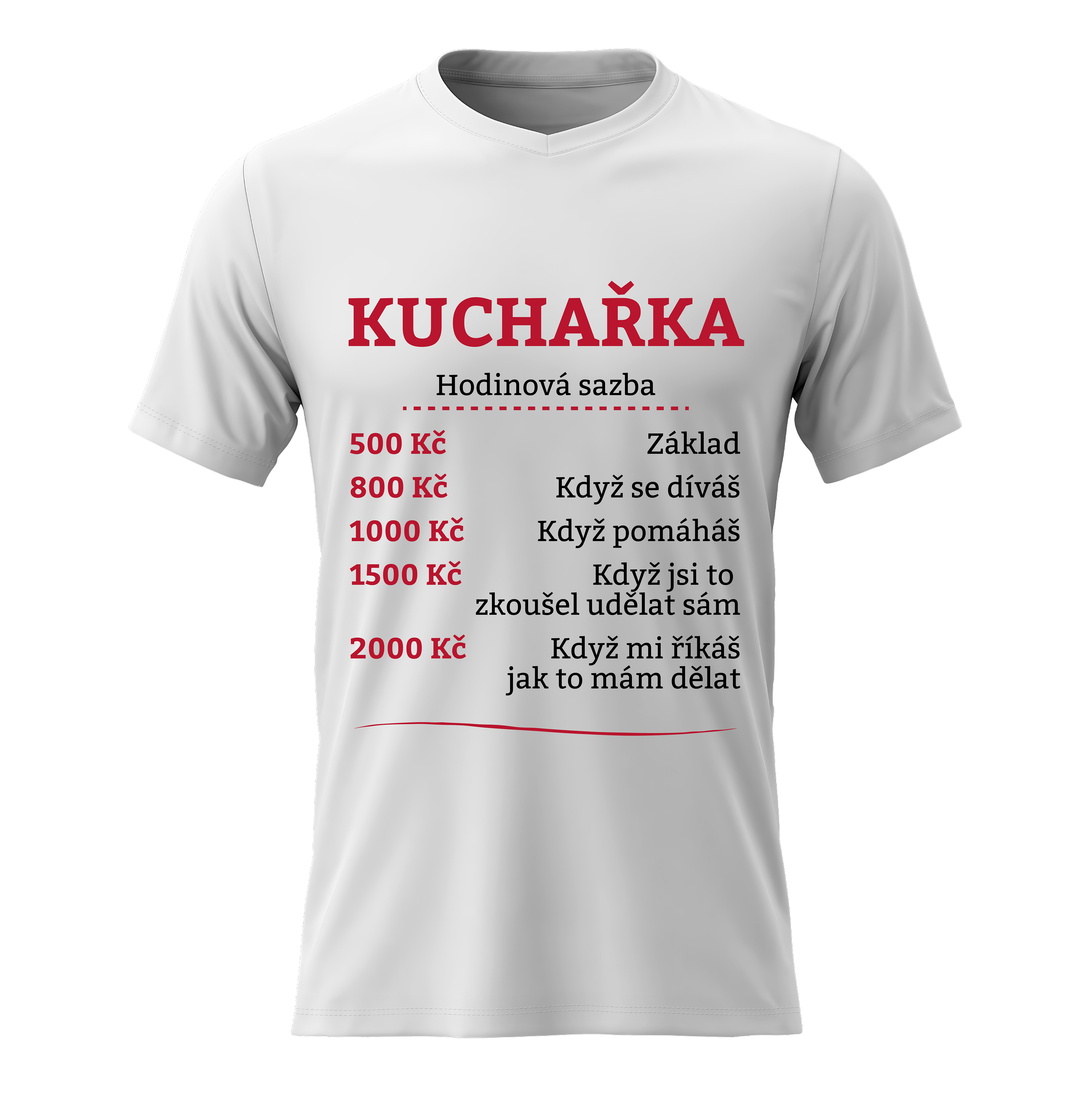 Akční nabídky na váš e-mailVtipné tričko s potiskem HODINOVÁ SAZBA KUCHAŘKA – styl s nadhledem