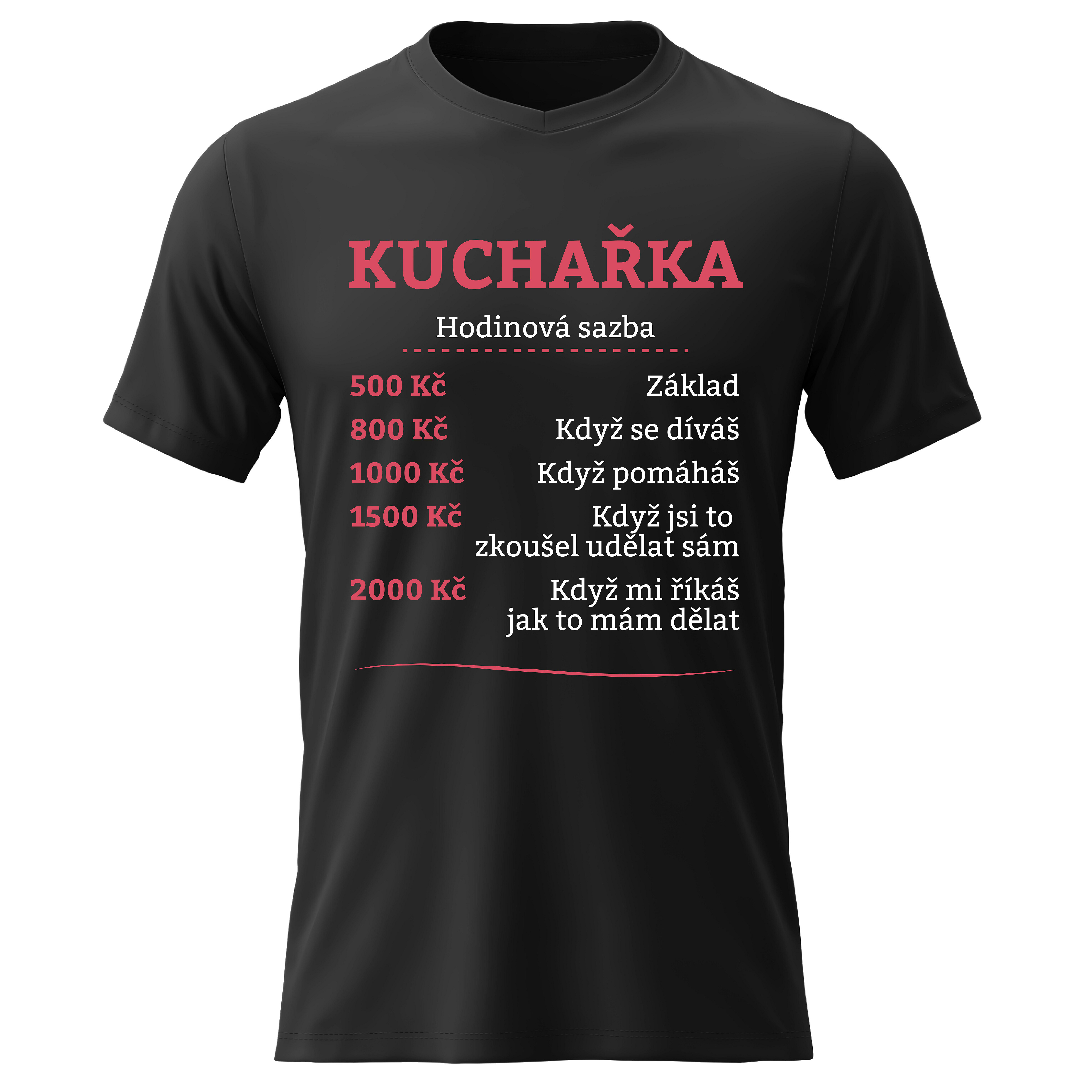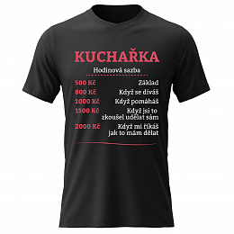 Akční nabídky na váš e-mailVtipné tričko s potiskem HODINOVÁ SAZBA KUCHAŘKA – styl s nadhledem