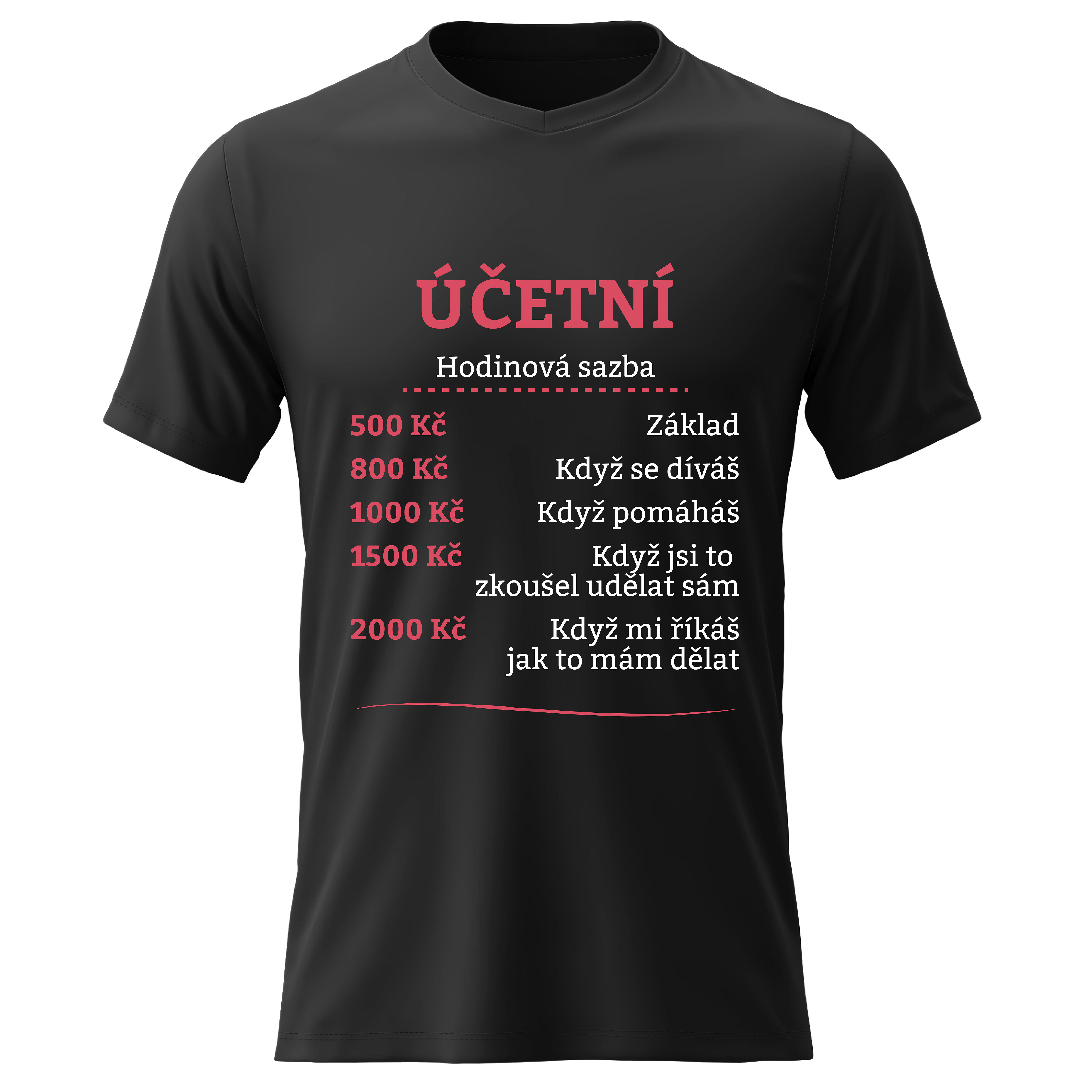 Akční nabídky na váš e-mailVtipné tričko s potiskem HODINOVÁ SAZBA ÚČETNÍ – styl s nadhledem