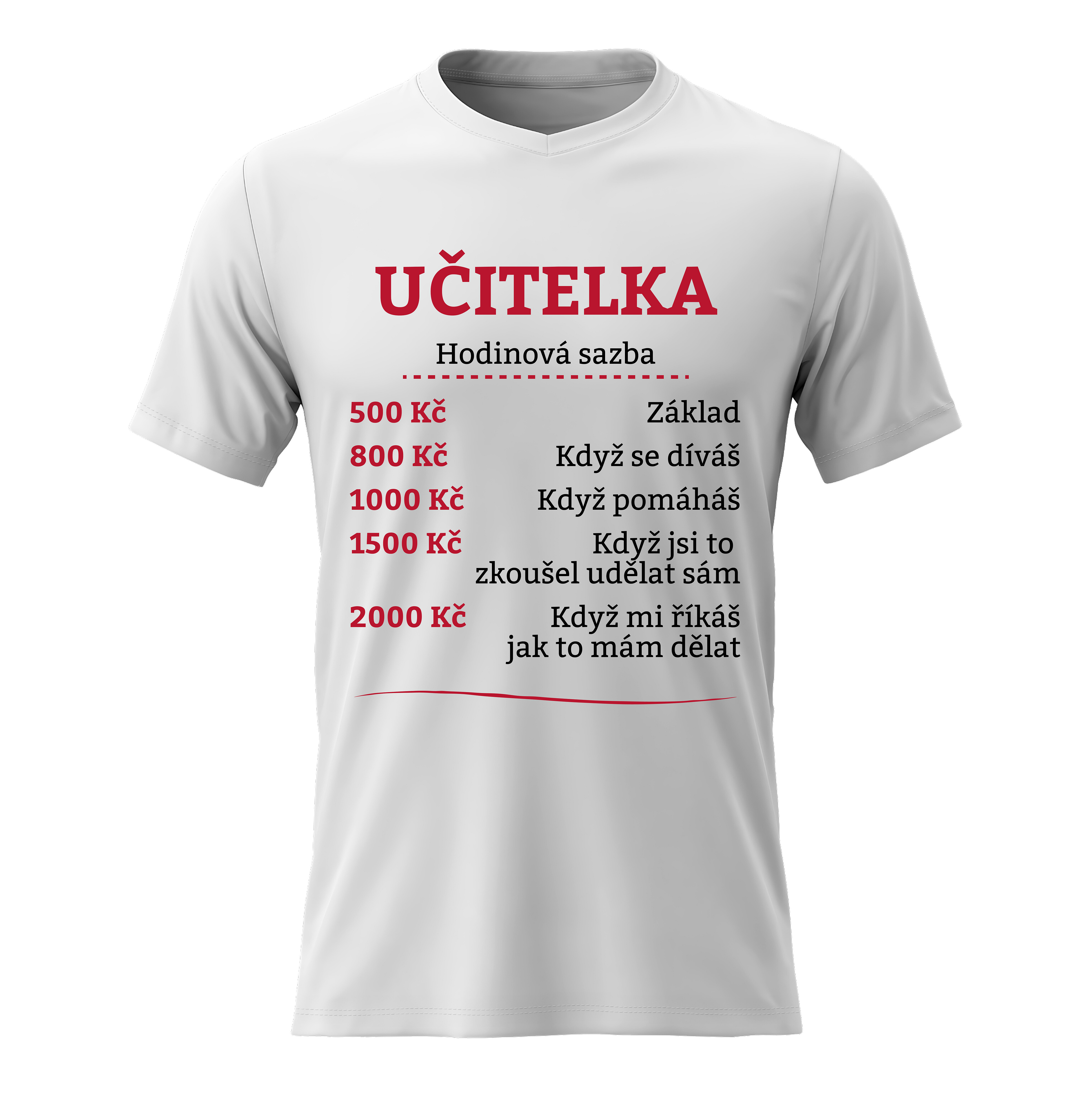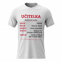 Akční nabídky na váš e-mailVtipné tričko s potiskem HODINOVÁ SAZBA UČITELKA – styl s nadhledem
