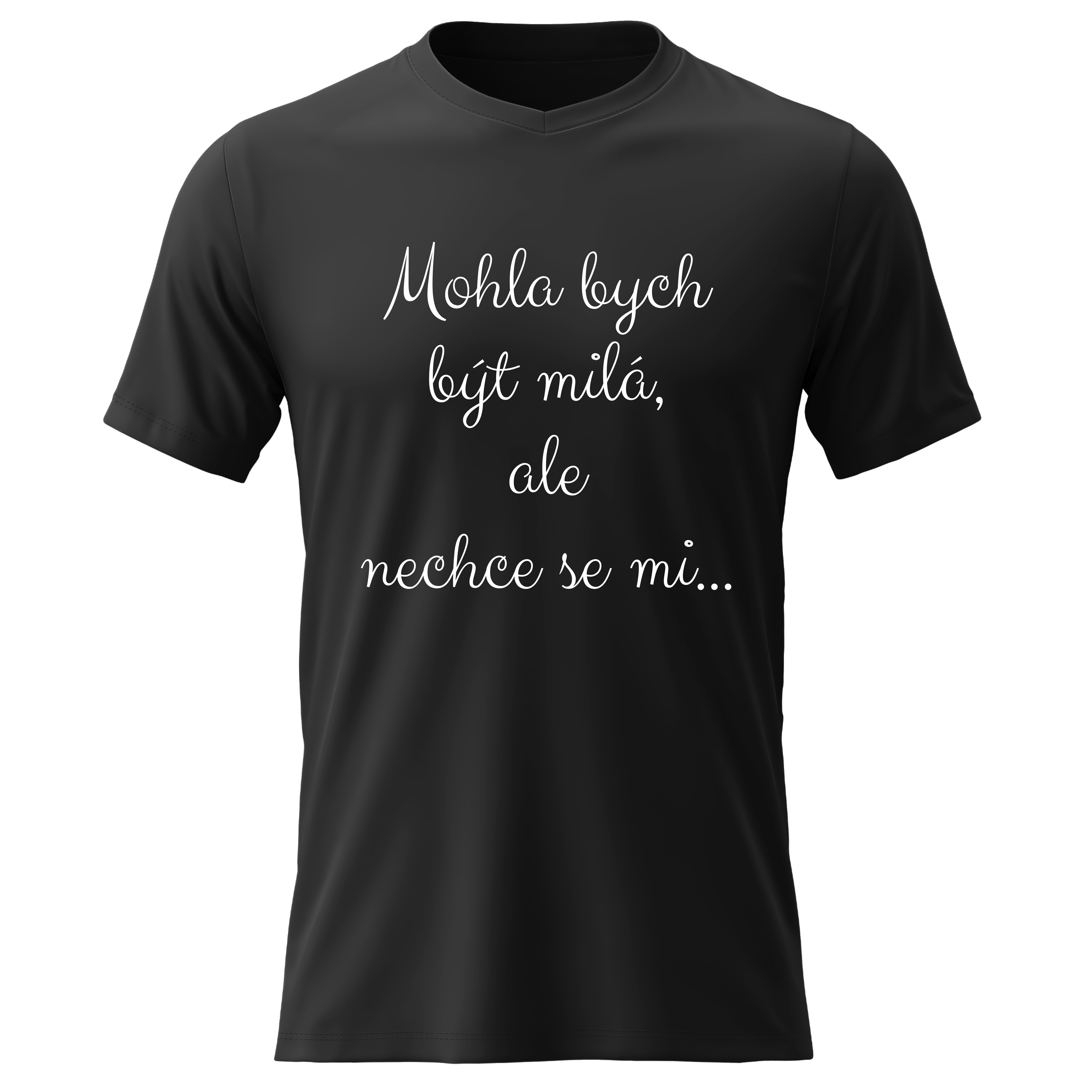 Akční nabídky na váš e-mailVtipné tričko s potiskem MOHLA BYCH BÝT MILÁ, ALE NECHCE SE MI – styl s nadhledem
