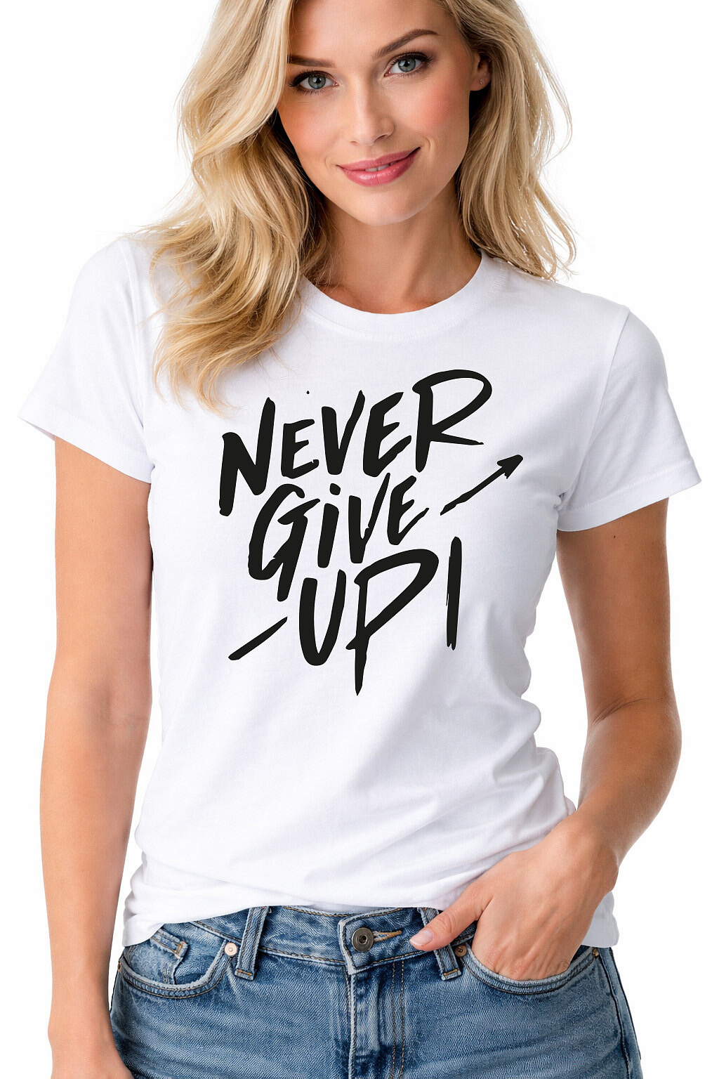 Originální potisk: „NEVER GIVE UP!“