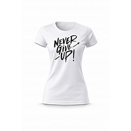 Akční nabídky na váš e-mailVtipné tričko s potiskem NEVER GIVE UP! – styl s nadhledem