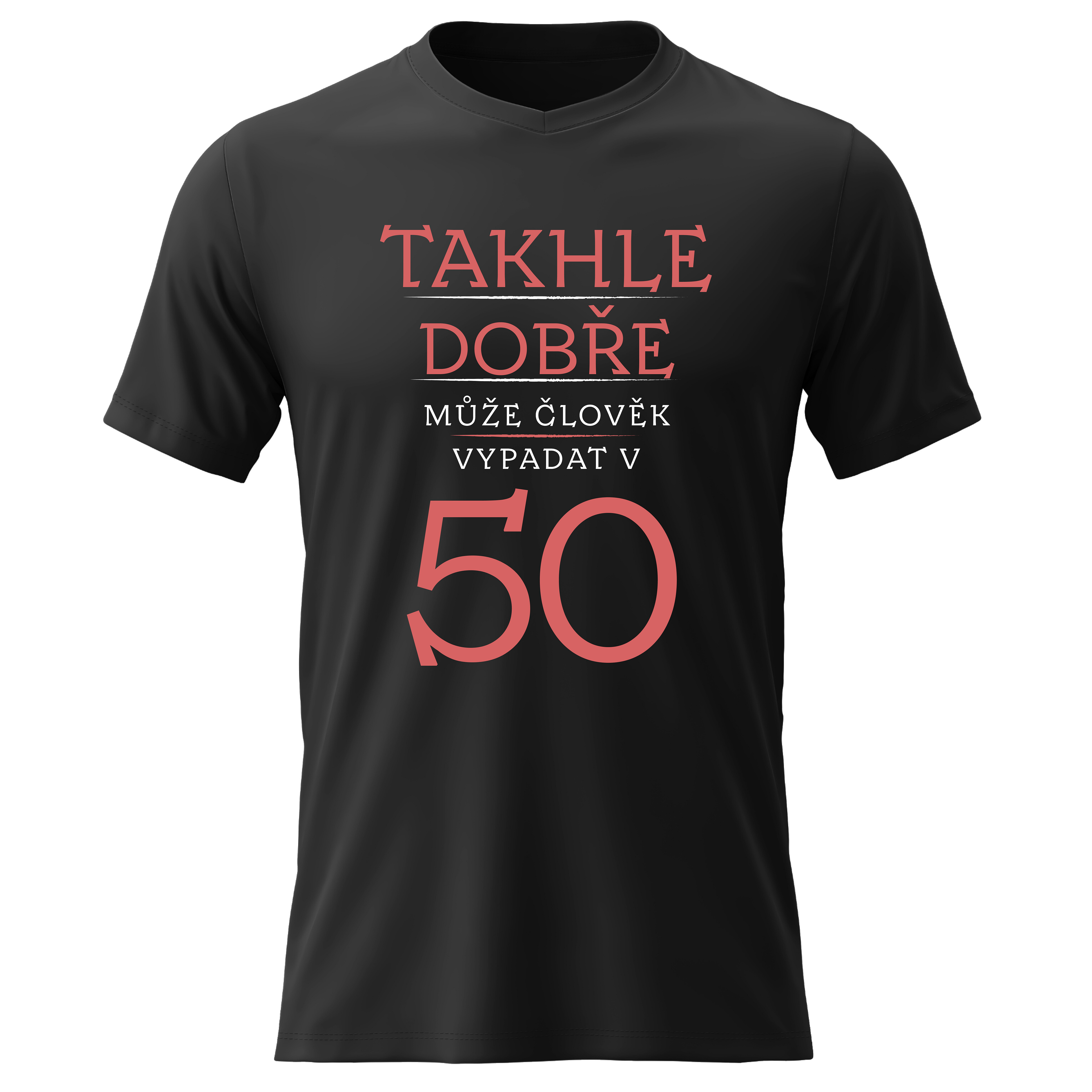 Originální potisk: „TAKHLE DOBŘE MŮŽE ČLOVĚK VYPADAT V 50 (ČERVENÁ)“