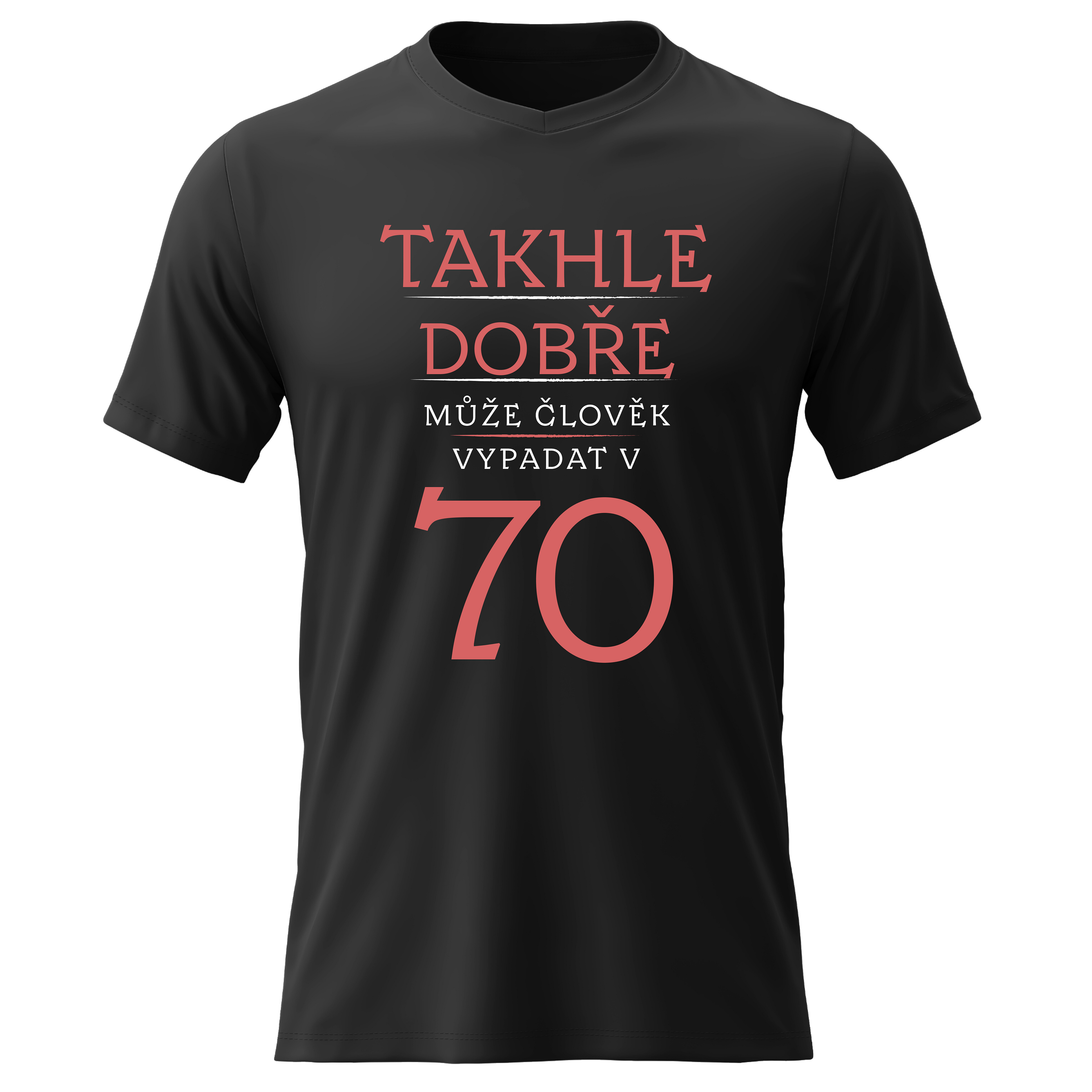 Akční nabídky na váš e-mailVtipné tričko s potiskem TAKHLE DOBŘE MŮŽE ČLOVĚK VYPADAT V 70 (ČERVENÁ) – styl s nadhledem