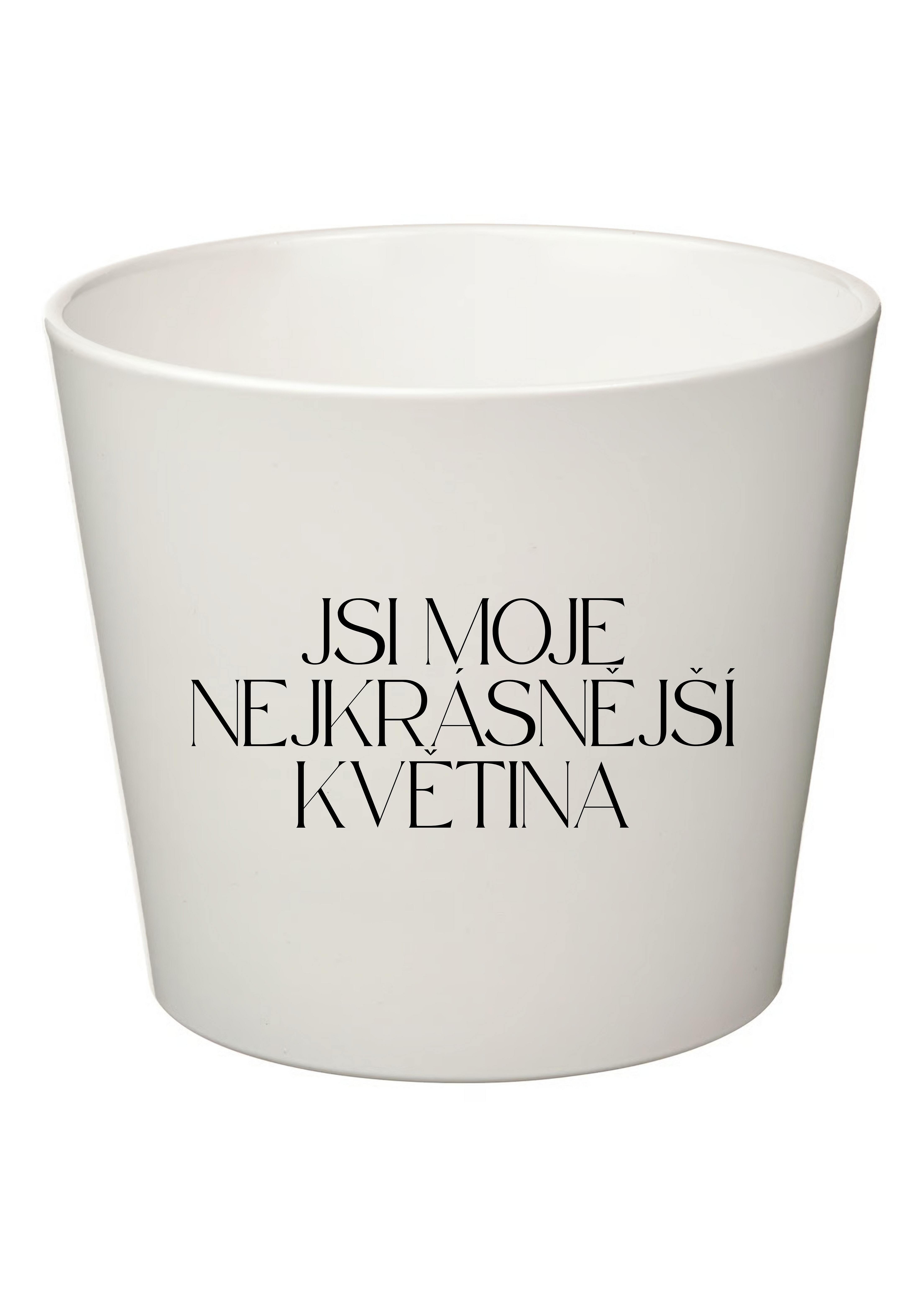 Akční nabídky na váš e-mailElegantní bílý květináč s něžným nápisem „Jsi moje nejkrásnější květina“ je dokonalým způsobem, jak vyjádřit lásku a potěšit někoho výjimečného. Tento citlivý a milý vzkaz promění obyčejný květináč v osobní dárek, který zahřeje u srdce.