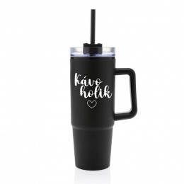 Popis KÁVOHOLIK - černý cestovní termohrnek s průhledným víčkem 900 ml