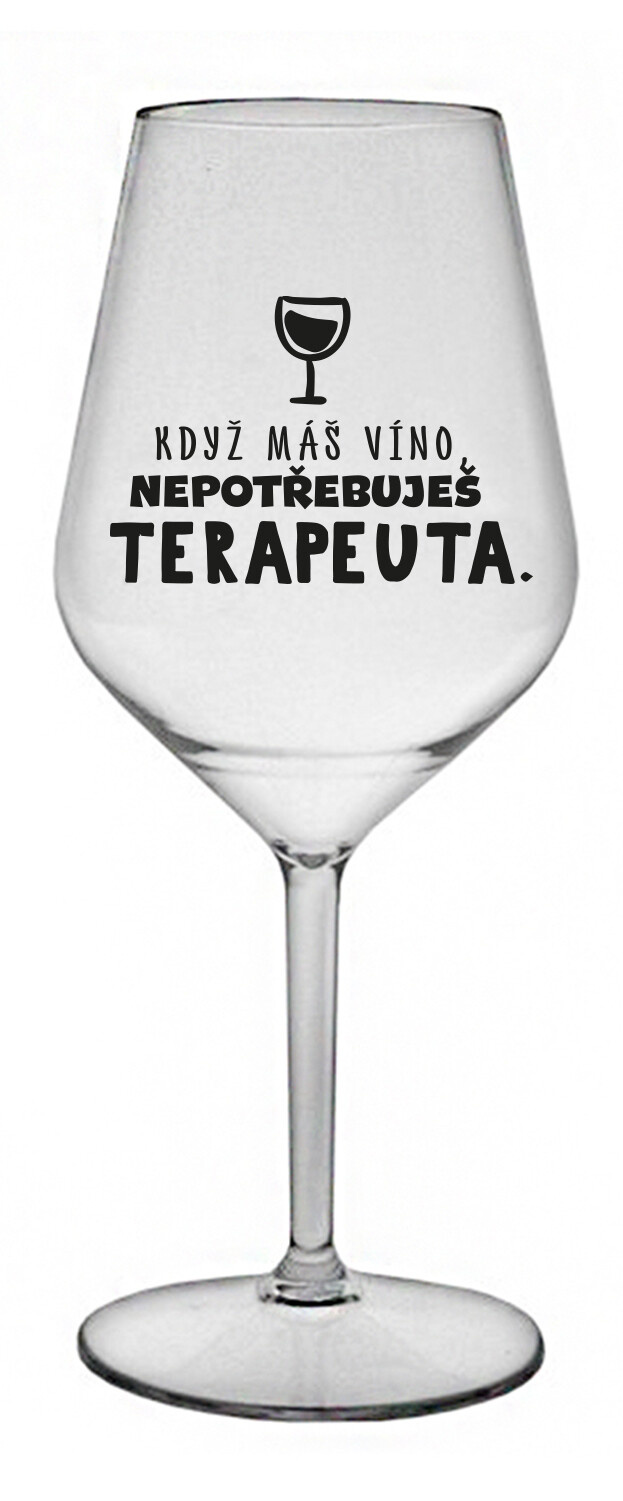 KDYŽ MÁŠ VÍNO, NEPOTŘEBUJEŠ TERAPEUTA - čirá nerozbitná sklenice na víno 470 ml