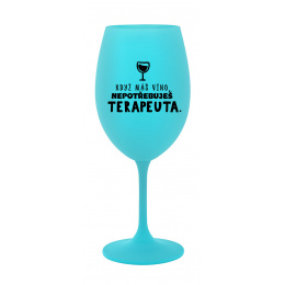 KDYŽ MÁŠ VÍNO, NEPOTŘEBUJEŠ TERAPEUTA - tyrkysová sklenice na víno 350 ml
