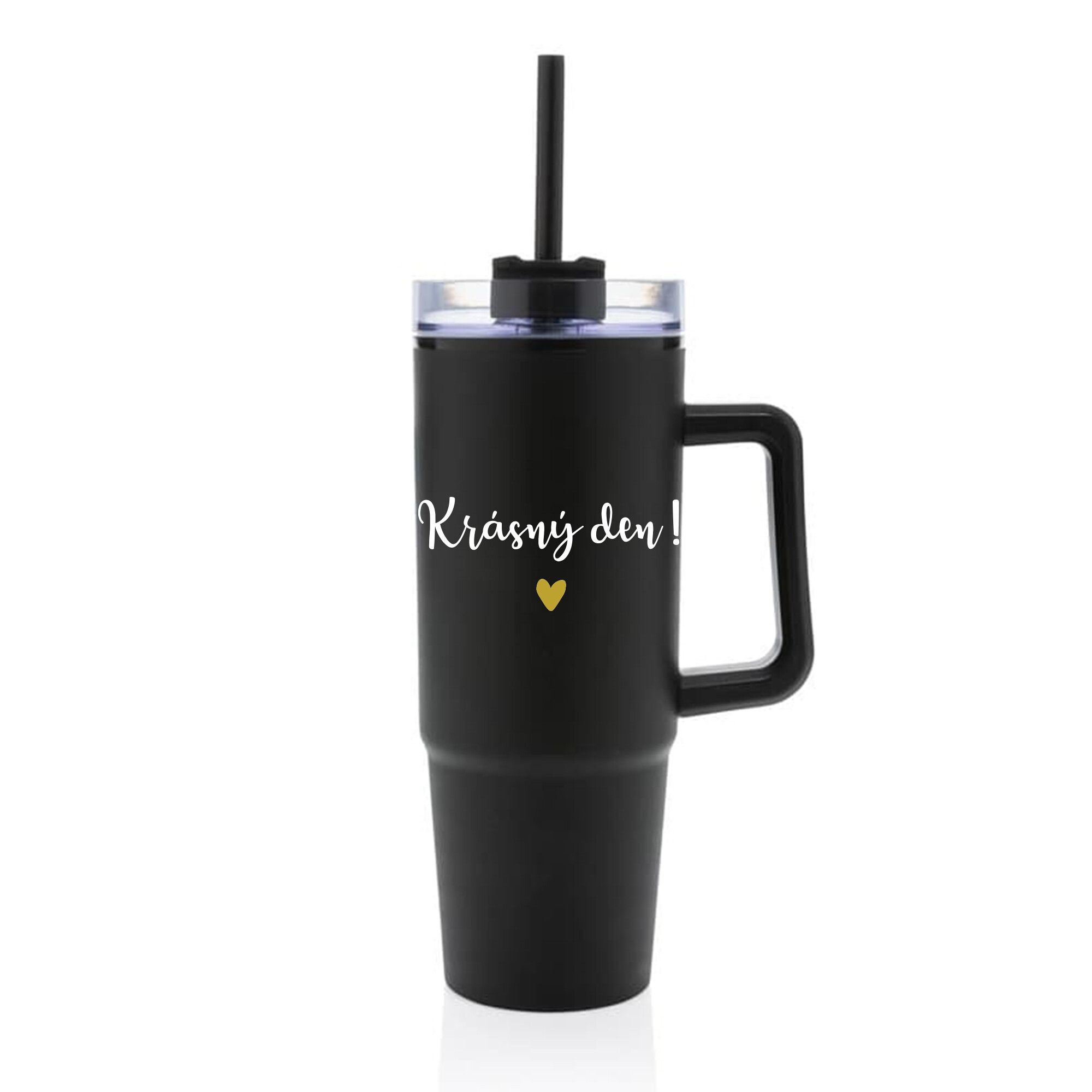 KRÁSNÝ DEN - černý cestovní termohrnek s průhledným víčkem 900 ml