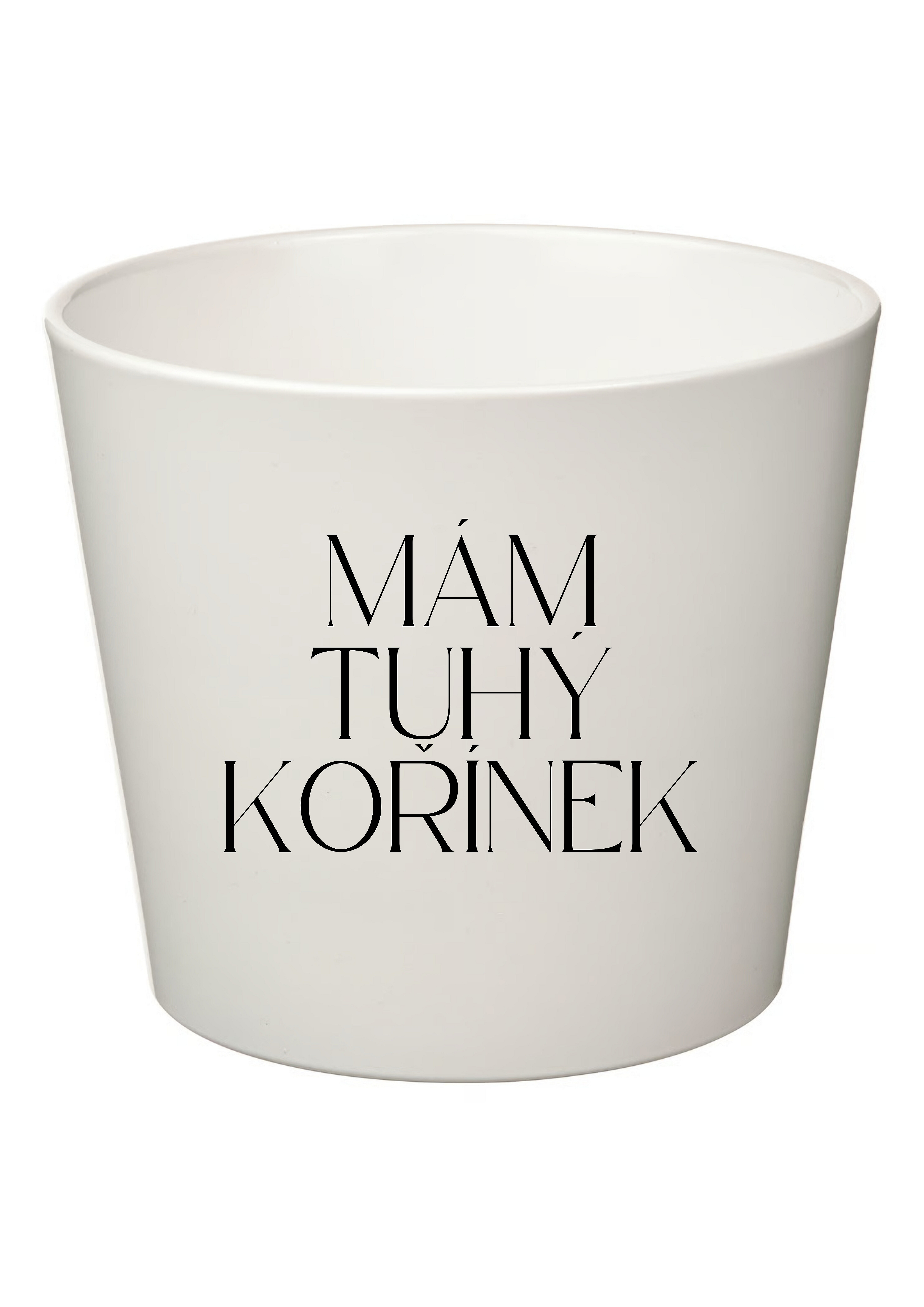 Akční nabídky na váš e-mailBílý keramický květináč s vtipným nápisem „MÁM TUHÝ KOŘÍNEK“ je ideálním doplňkem pro všechny milovníky humoru a rostlin. Hravý text pobaví a dodá Vašemu domovu odlehčenou, originální atmosféru.