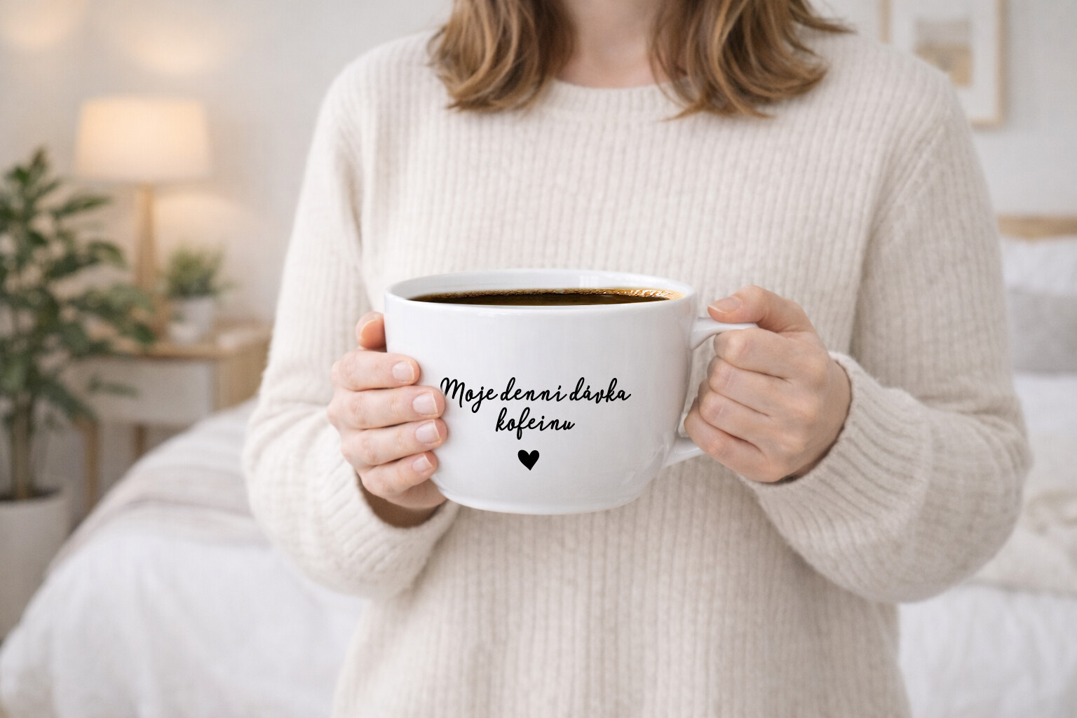 Ráno? Jedině s kávou. Hrnek s potiskem „moje denní dávka kofeinu“ přesně vystihuje každodenní realitu všech milovníků kávy. Nalij, vypij, funguj. Jednoduché, upřímné a zatraceně pravdivé.