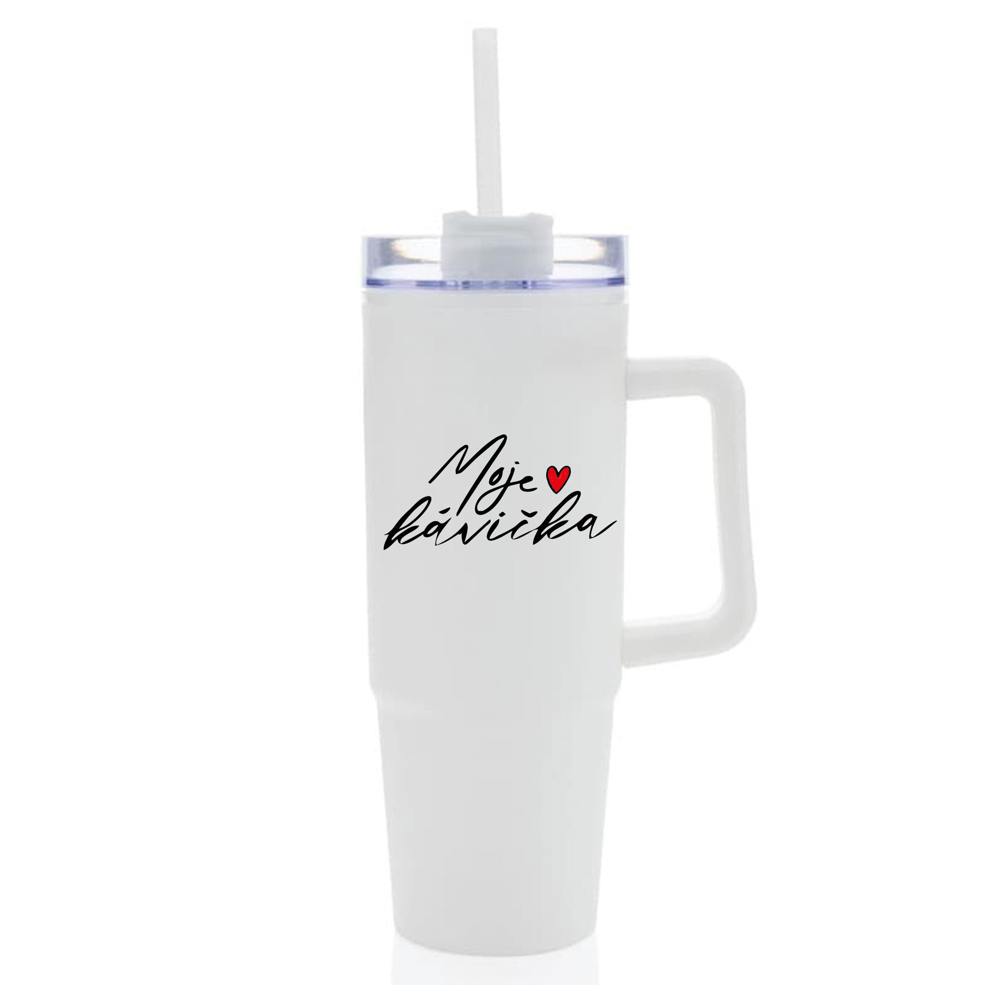 MOJE KÁVIČKA - bílý cestovní termohrnek s průhledným víčkem 900 ml