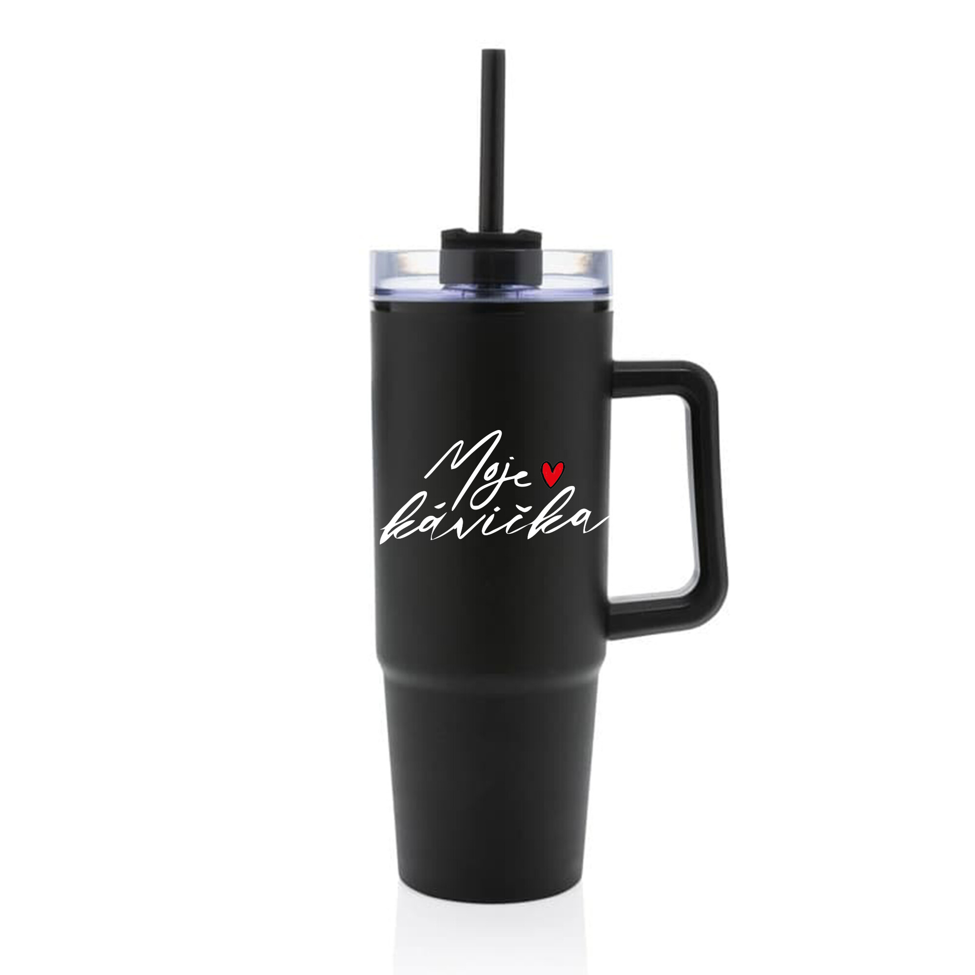 MOJE KÁVIČKA - černý cestovní termohrnek s průhledným víčkem 900 ml