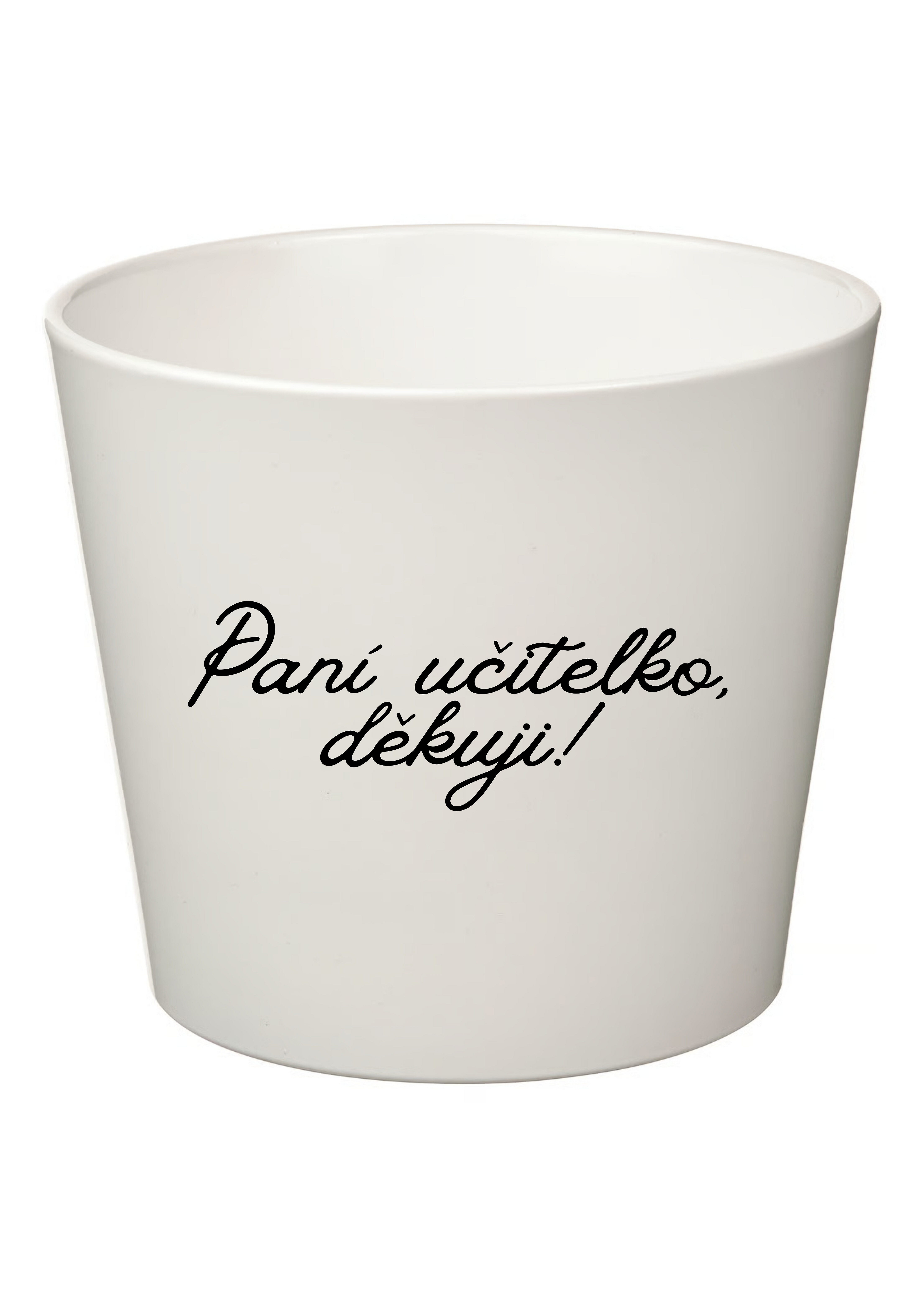 Akční nabídky na váš e-mailKvětináč s milým poděkováním „PANÍ UČITELKO, DĚKUJI!“ je krásným a originálním dárkem pro paní učitelku na rozloučenou. Tento elegantní bílý květináč potěší nejen svým designem, ale i praktickým využitím – skvěle se hodí na menší pokojové rostliny nebo bylinky.