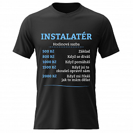 Akční nabídky na váš e-mailVtipné tričko s potiskem HODINOVÁ SAZBA - INSTALATÉR – styl s nadhledem