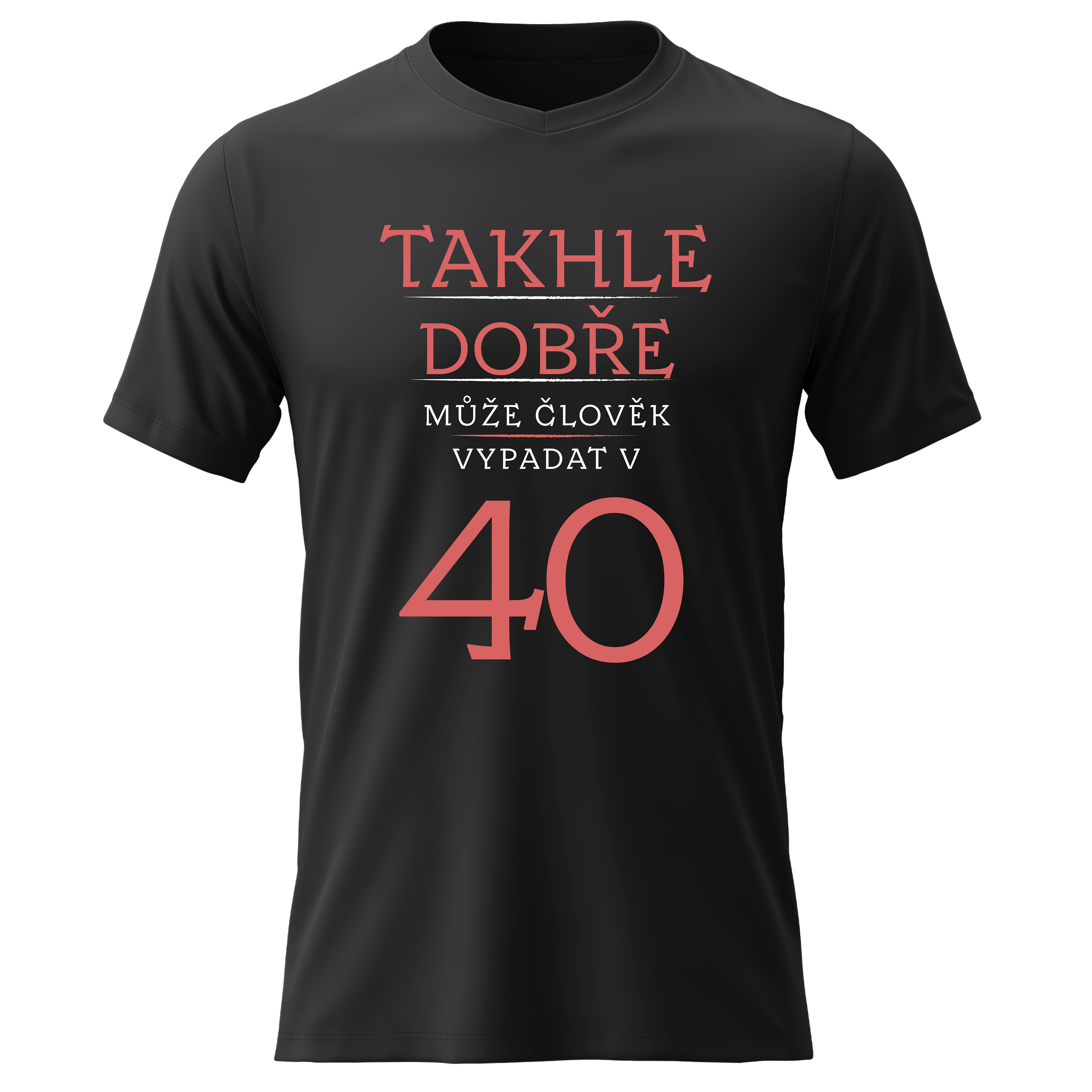Akční nabídky na váš e-mailVtipné tričko s potiskem TAKHLE DOBŘE MŮŽE ČLOVĚK VYPADAT VE 40 (ČERVENÁ) – styl s nadhledem