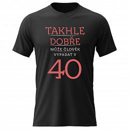 Originální potisk: „TAKHLE DOBŘE MŮŽE ČLOVĚK VYPADAT VE 40 (ČERVENÁ)“