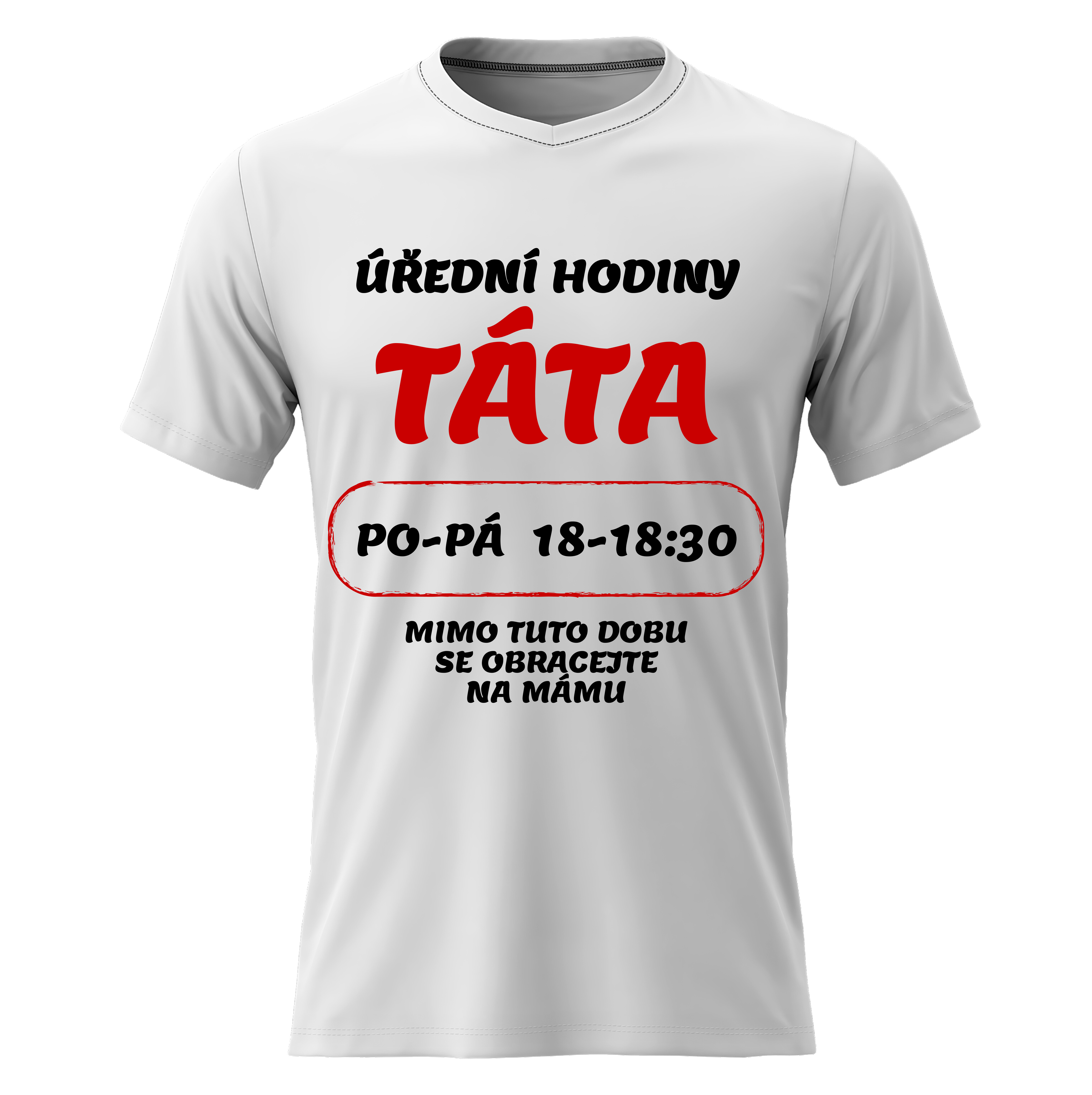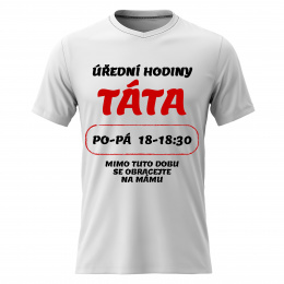 Akční nabídky na váš e-mailVtipné tričko s potiskem ÚŘEDNÍ HODINY TÁTA – styl s nadhledem