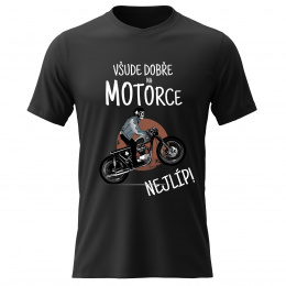 Akční nabídky na váš e-mailVtipné tričko s potiskem VŠUDE DOBŘE NA MOTORCE NEJLÍP! – styl s nadhledem
