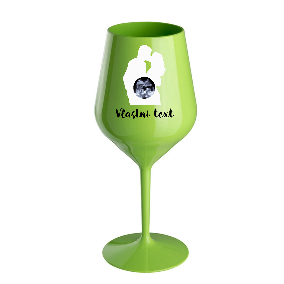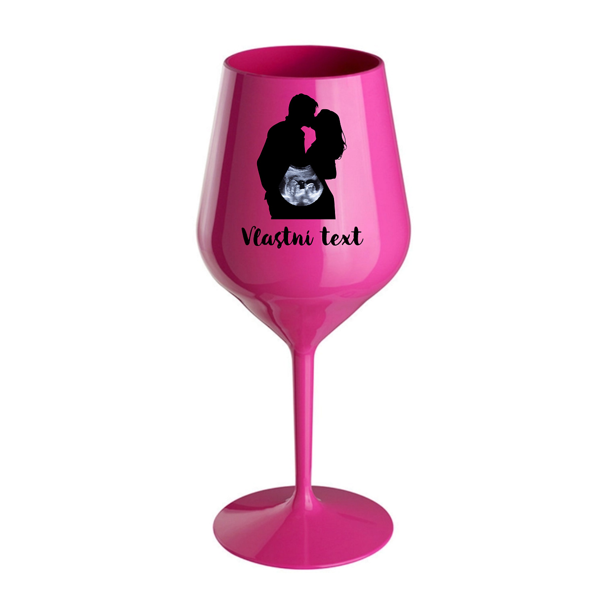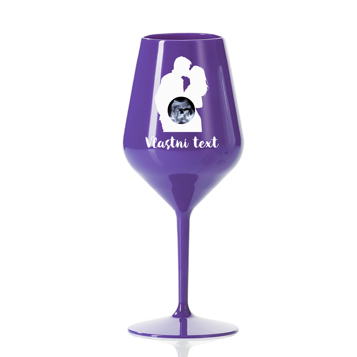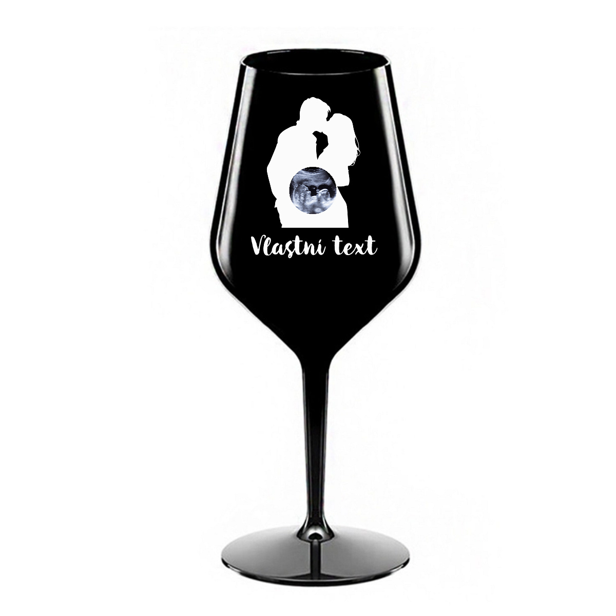 Stylová nerozbitná sklenice na víno s romantickou siluetou páru se promění v dojemný a osobní doplněk. Stačí vložit fotografii ultrazvuku, která se elegantně promítne do motivu – a vytvoří tak výjimečný design plný emocí a očekávání.