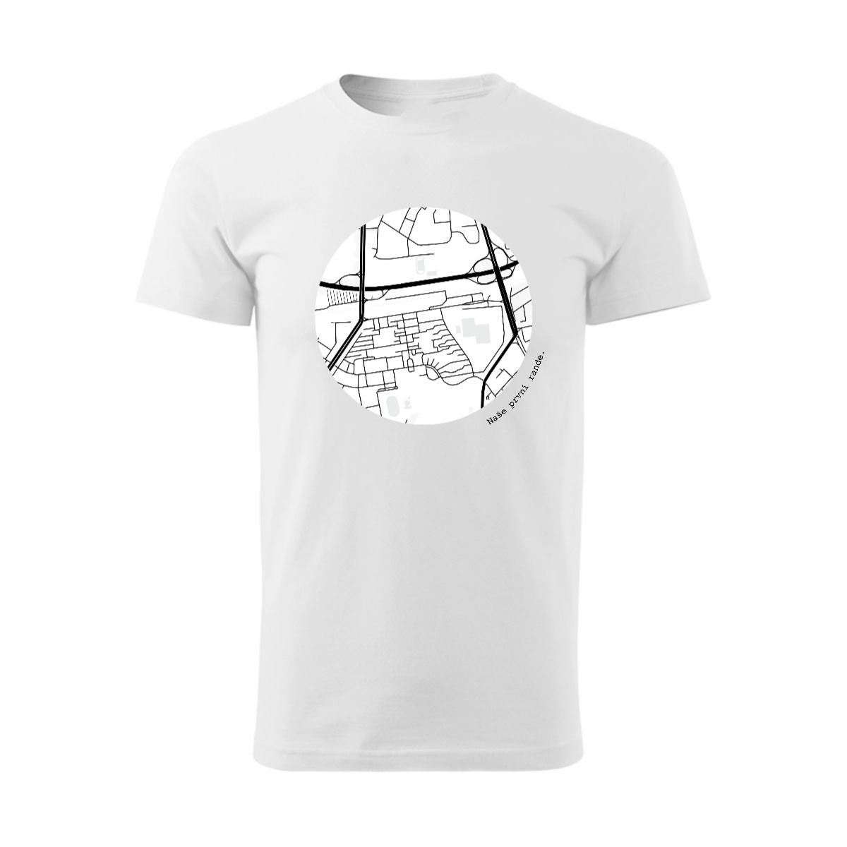 Zachyťte místo, které pro Vás něco znamená. Na tomto personalizovaném tričku s mapou si můžete zvolit libovolnou adresu nebo místo na mapě – domov, místo seznámení, svatby, první schůzky nebo třeba oblíbené město.