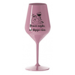 PRINCE NAJDU, AŽ DOPIJU VÍNO. - světle růžová nerozbitná sklenice na víno 470 ml