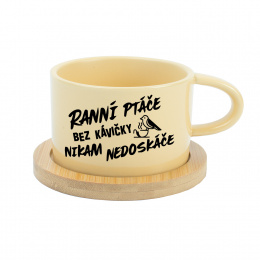 RANNÍ PTÁČE BEZ KÁVIČKY NIKAM NEDOSKÁČE - žlutý hrníček makronka 200 ml