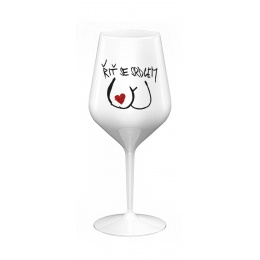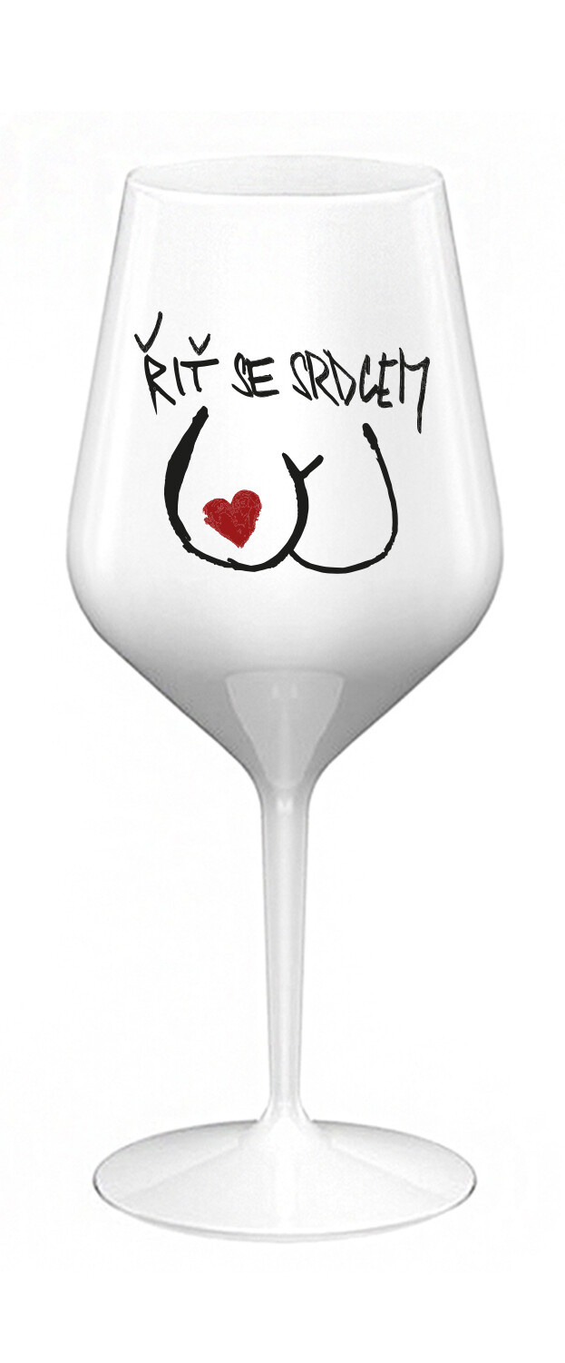 ŘIŤ SE SRDCEM - bílá nerozbitná sklenice na víno 470 ml
