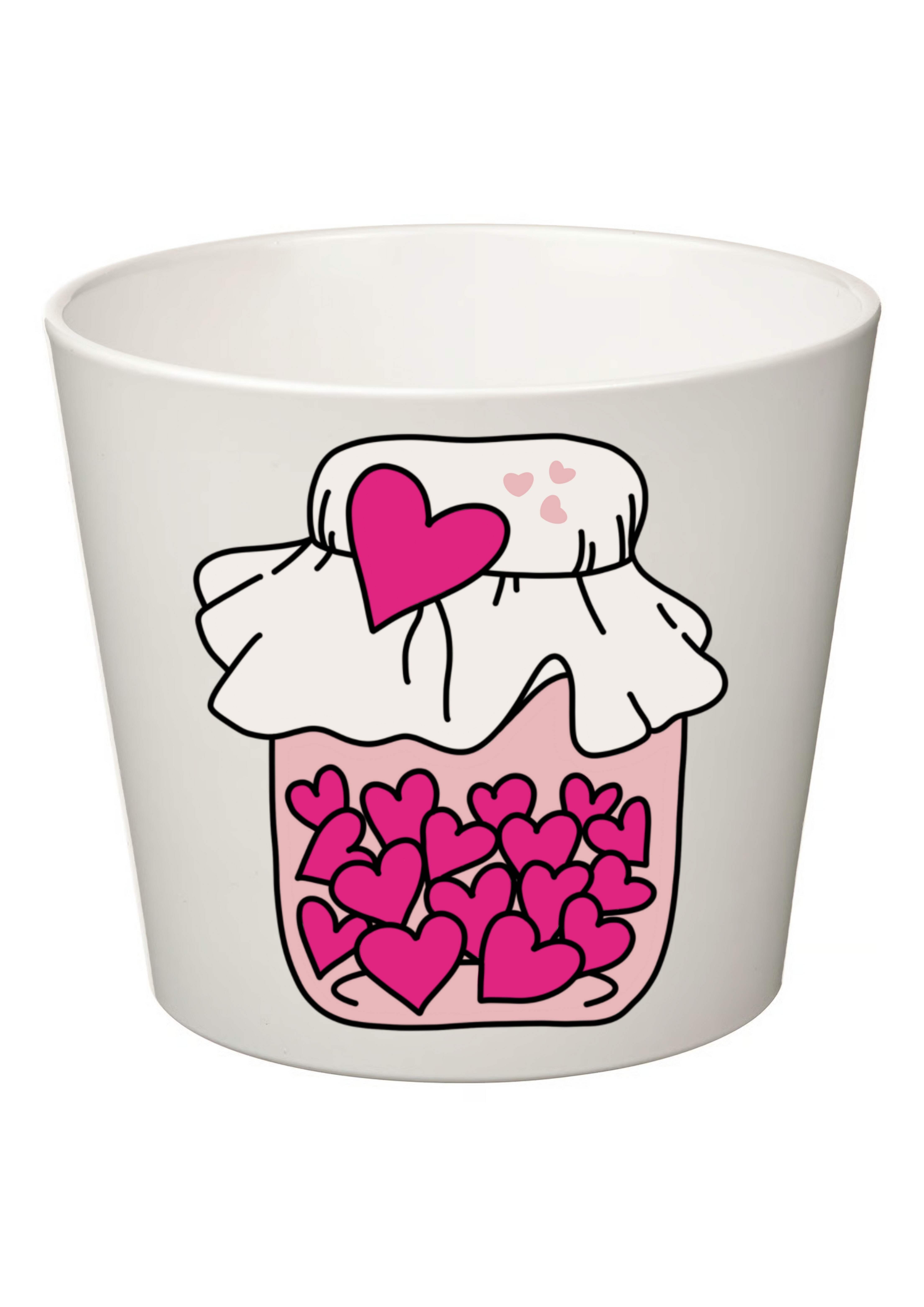 Akční nabídky na váš e-mailElegantní bílý květináč s romantickým potiskem sklenice se srdíčky je stylovým doplňkem do každého interiéru. Jednoduchý, ale výrazný motiv symbolizuje lásku, harmonii a pozitivní energii, díky čemuž se skvěle hodí nejen jako dekorace, ale i jako milý dárek pro někoho blízkého.